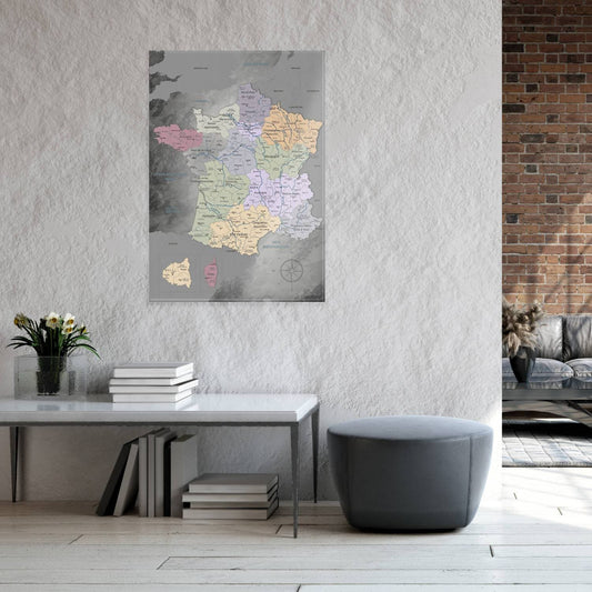 Magnetisches Glasbild - Frankreichkarte Edelgrau