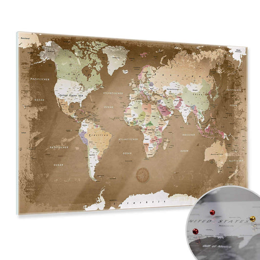 Magnetisches Glasbild - Weltkarte Oldstyle