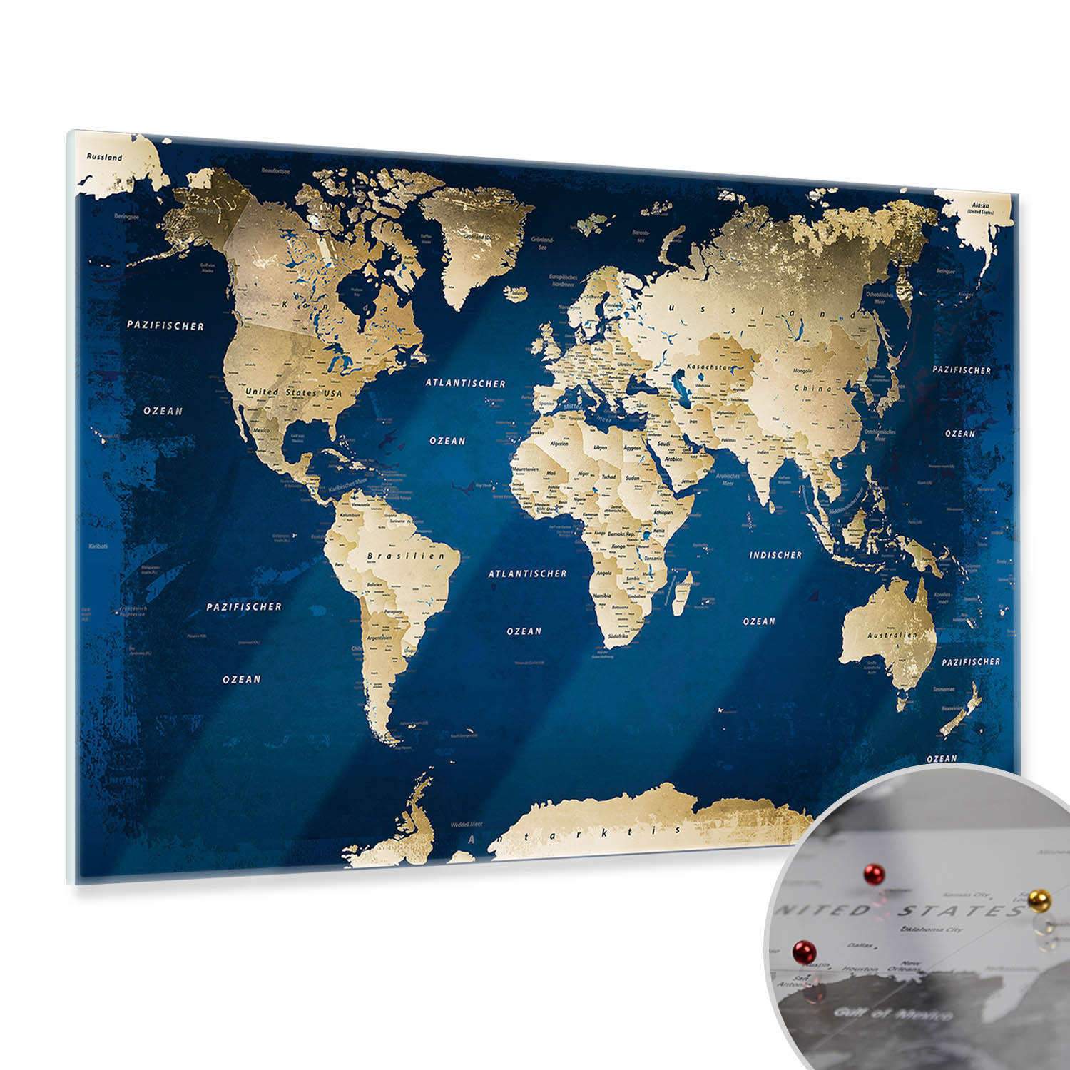 Magnetisches Glasbild - Weltkarte Ocean - Deutsch